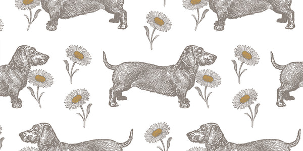 Say hello to our Dog & Daisy design! Featuring a sweet little dachshund dog and daisies, this two colour print is perfect for dog lovers.