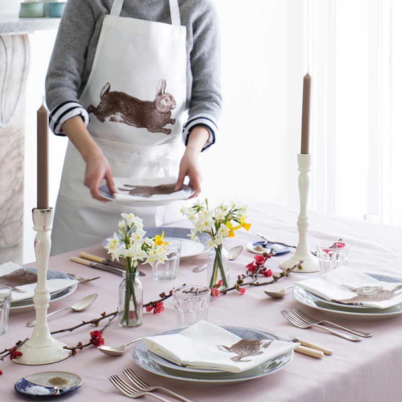 Let the bunny venture into your kitchen with our Rabbit apron. Screen printed onto a 100% cotton, this pretty and practical apron is the perfect cover up for the serious cook.